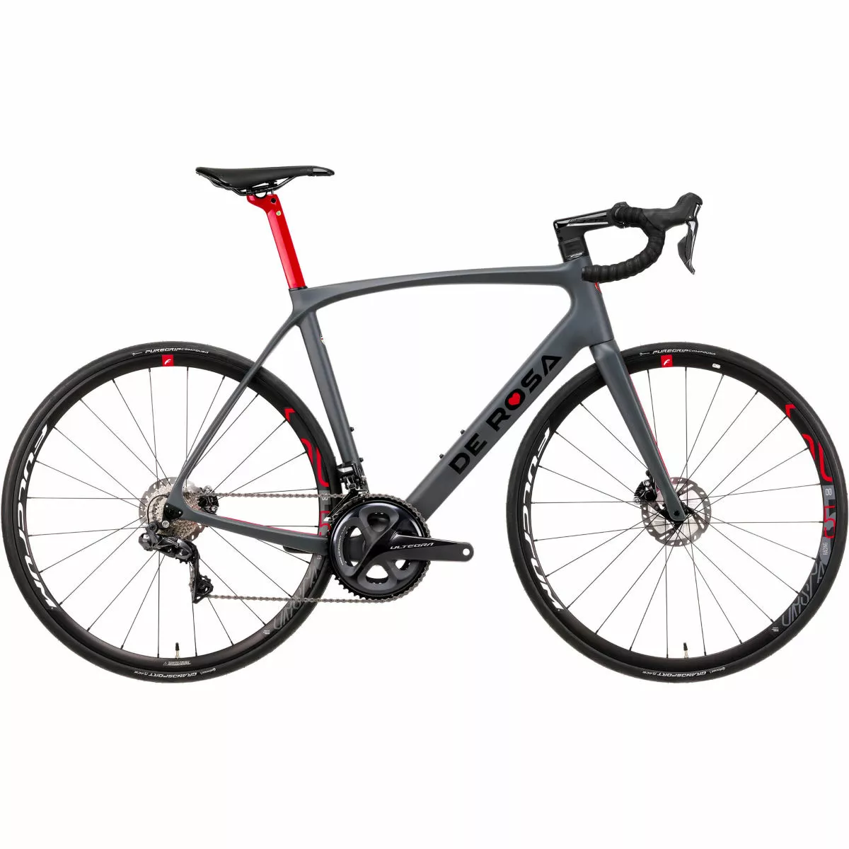 Sitting at the pinnacle of De Rosa’s race lineup for many years, their Idol model is engineered from Super Hi-Modulus fibre with a blend of T1000 and T800. This construction achieves the greatest structural stiffness and vibration-absorbing while remaining lightweight. Plus, this bike is equipped with a Shimano Ultegra Di2 electronic drivetrain that provides fast, smooth and reliable gear shifting accuracy. And, it’s fitted with Ultegra hydraulic disc brakes, giving you the utmost control of your momentum in all weather conditions. Finally, this exceptional road race bike rolls upon Fulcrum Racing 500 wheels wrapped in Continental Grand Sport Race tyres for the ultimate in traction, pace and grip.