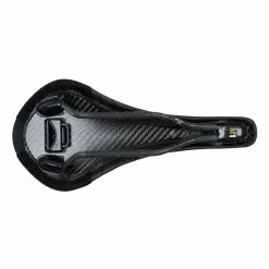 Rather than a conventional solid or tubular rail, fi’zi:k’s rails use an outer sleeve of braided carbon fibers forming a tube, with the void inside being filled by unidirectional carbon fibers. This construction is strong, light and stiff.
