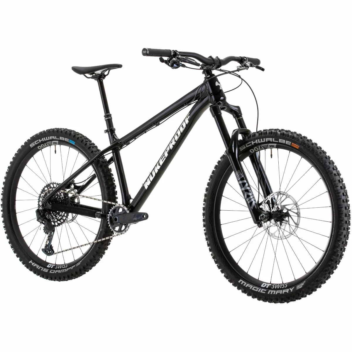Tyres: Front: Schwalbe Magic Mary, Snakeskin, TL Easy, Addix Soft, 27.5×2.6″; Rear: Schwalbe Hans Dampf, Snakeskin, TL Easy, Addix Speedgrip. 27.5×2.6″