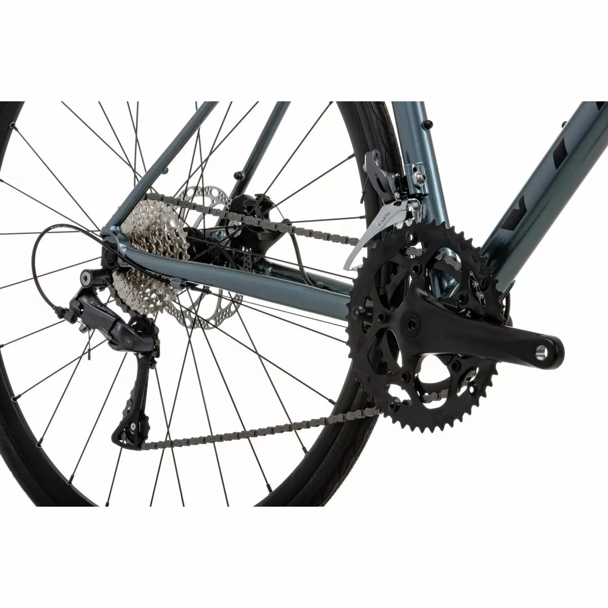 A closer look sees a high-quality double-butted aluminium frame paired with a lightweight carbon fork. Mechanical disc brakes ensure precise stopping power for confidence and control no matter the road conditions. The addition of mudguard mounts and internal cable routing will protect you and the bike from dirt coming up off the road and the 8-speed Shimano Claris gearing offers plenty of range for encounters with hills.